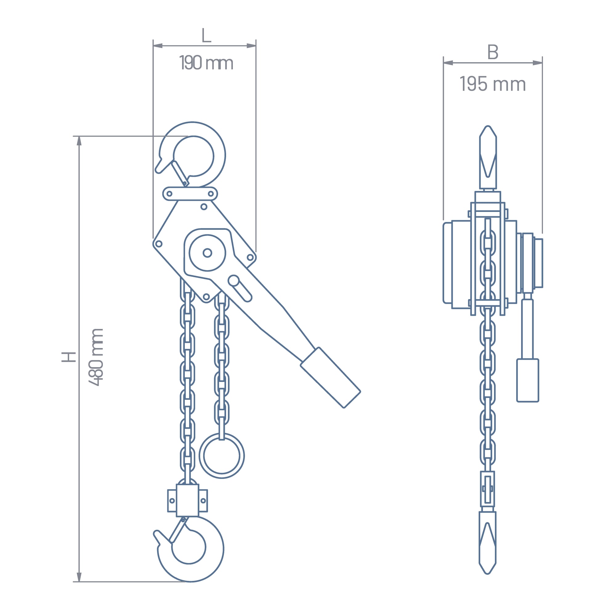 • Chain length : Available in 1.5 m, 3 m or 6 m for different working heights