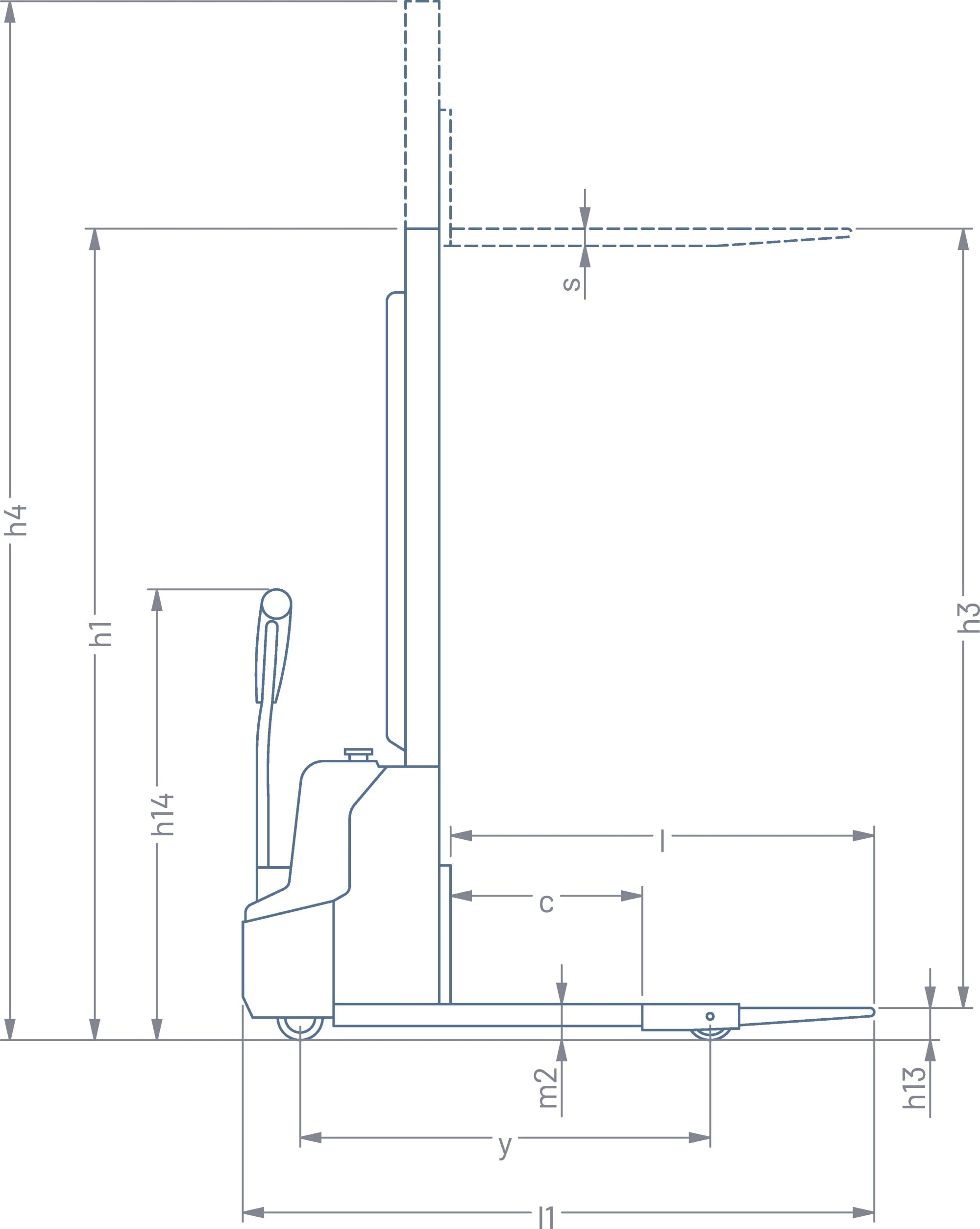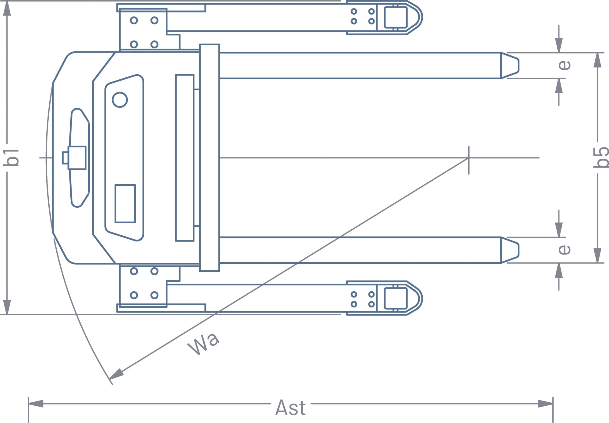 - Forks: The wide-track forks are adjustable in 5 steps - 1181 mm, 1231 mm, 1281 mm, 1381 mm or 1481 mm