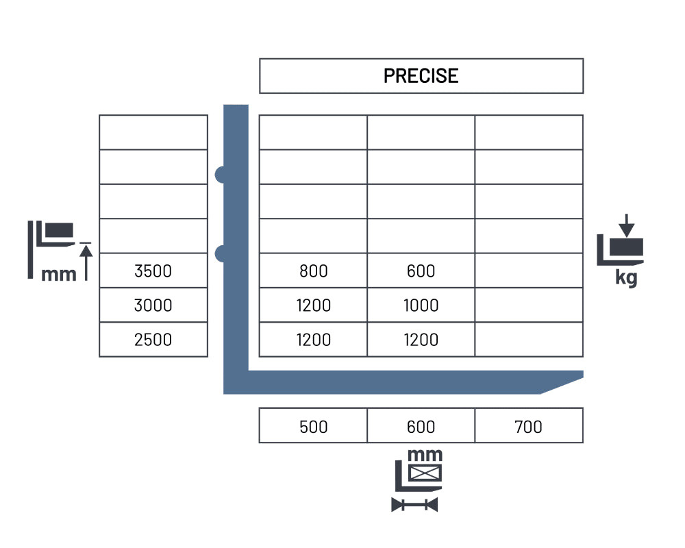 A highly affordable high lift truck with pro features for precise load handling up to 1200 kg