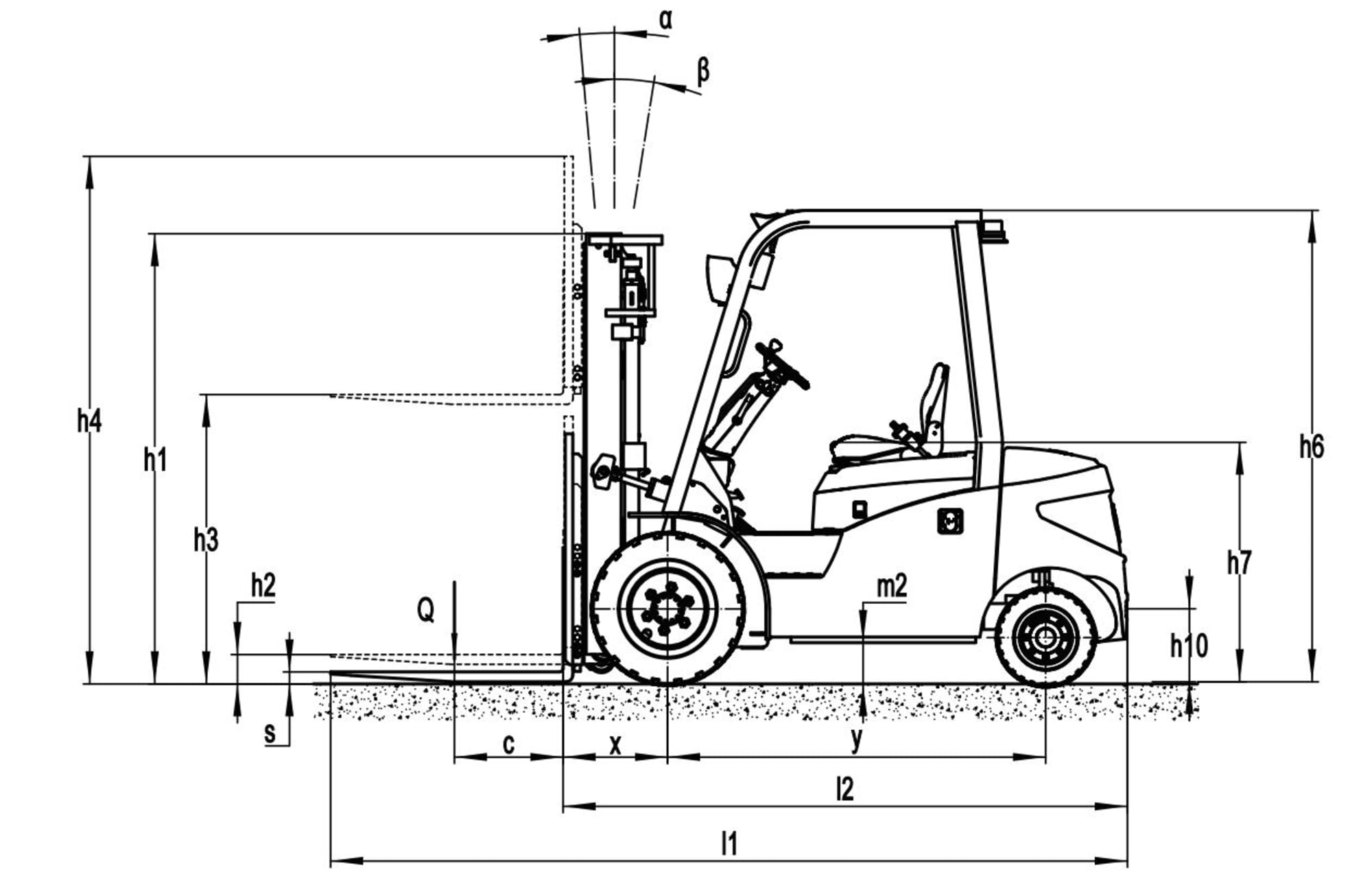 Bodenfreiheit bei abgesenkten Gabeln125 mmm2