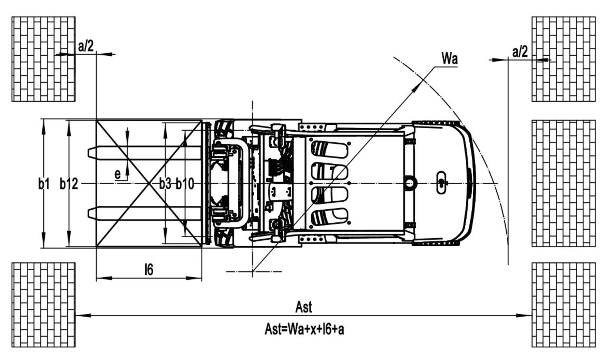 Arbeitsgang-Breite mit Europaletten4200 mmAst