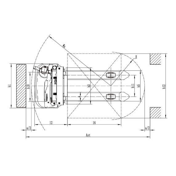 Arbeitsgang-Breite mit Europaletten2240 mmAst